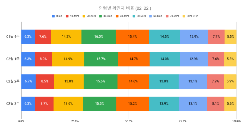 - 누적 : 1,400,253명 (전체 확진자 가운데 4.87%)