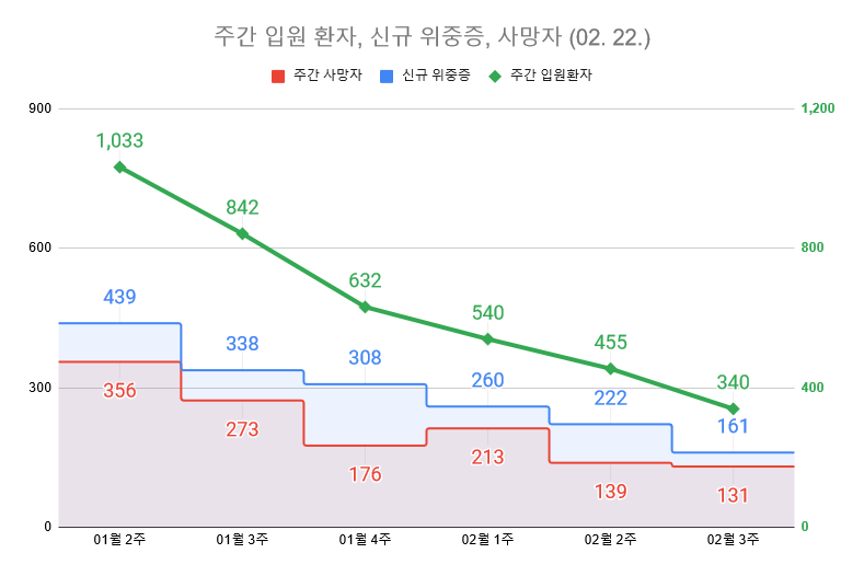 - 최근 4주간은 그 이전 4주간에 비해 확진자 -92%, 사망자 -47%