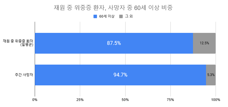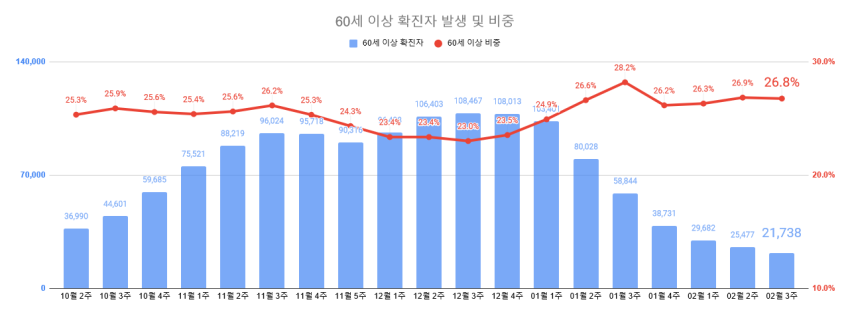 - 60세 이상 : 확진자 규모와 비중 모두 감소