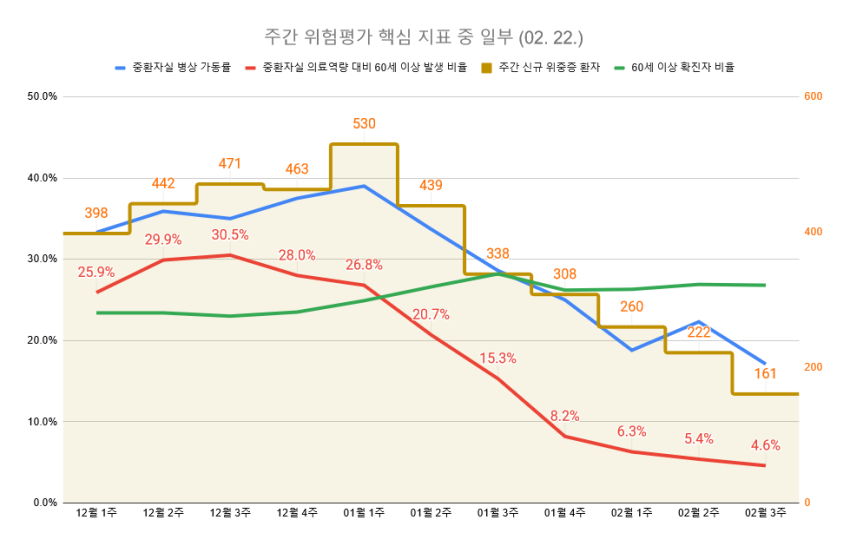 "신규 확진자, 신규 위중증 환자, 사망자 수 등 발생 지표와 병상 가동률이 감소되는 상황을 고려"
