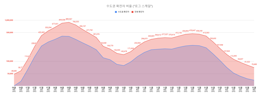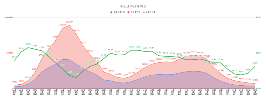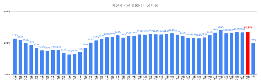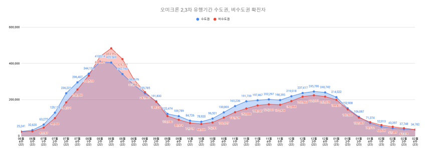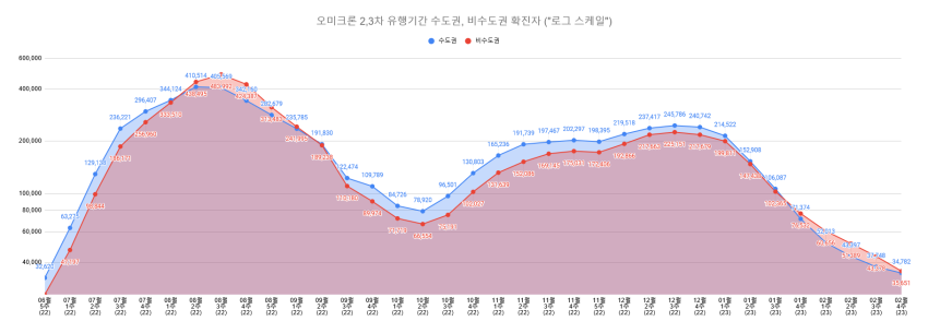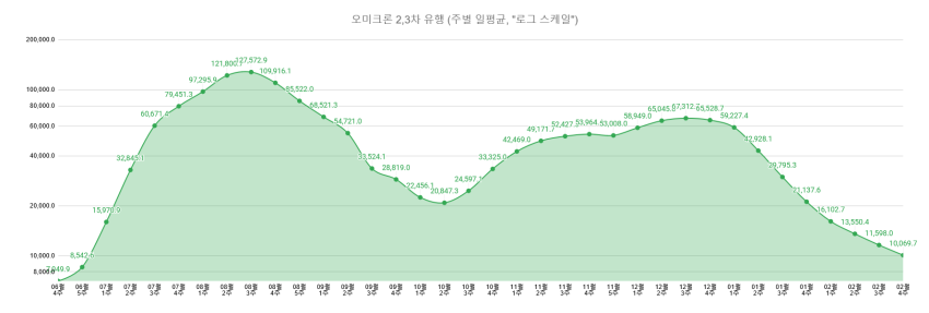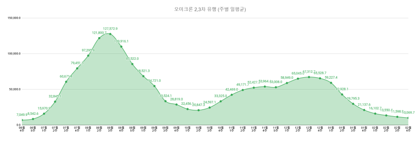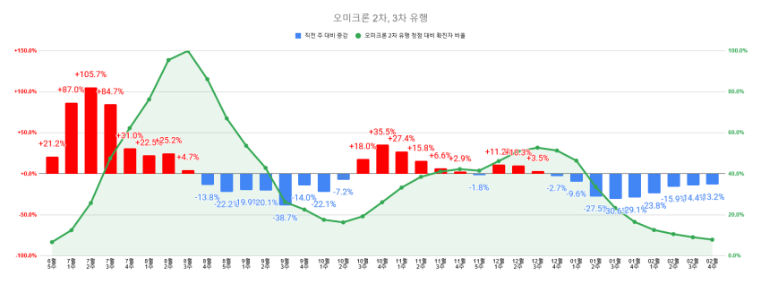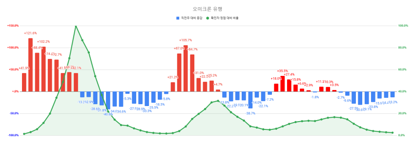 오미크론 유행 정점 대비 2.5% / 오미크론 2차 유행 정점 대비 7.9%