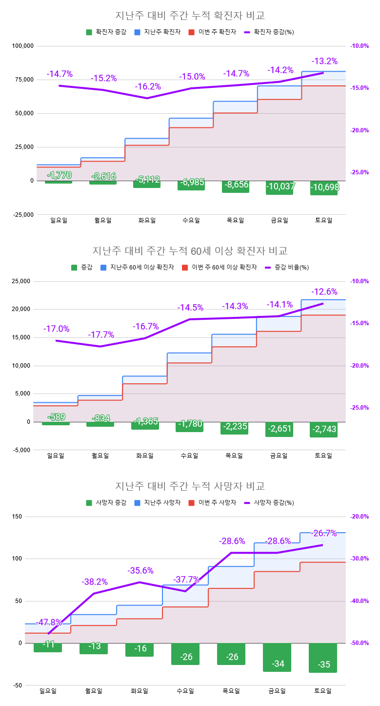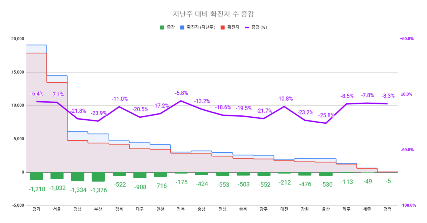 주간 확진자 발생 지난주 대비 -13.2%
