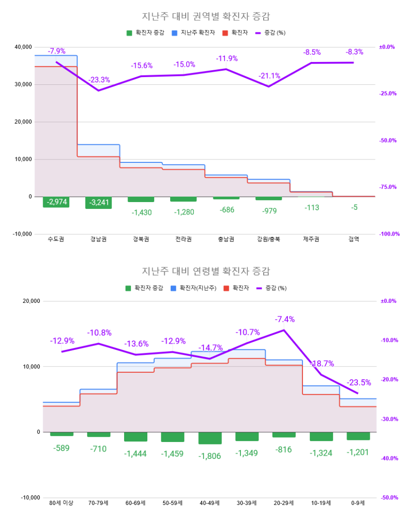 비수도권, 9주 연속 발생 감소 -7,727 (-17.8%)