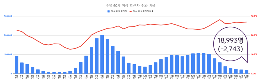 60세 이상, 26.9% (↑0.1%p) 18,993명 (-2,743, -12.6%)