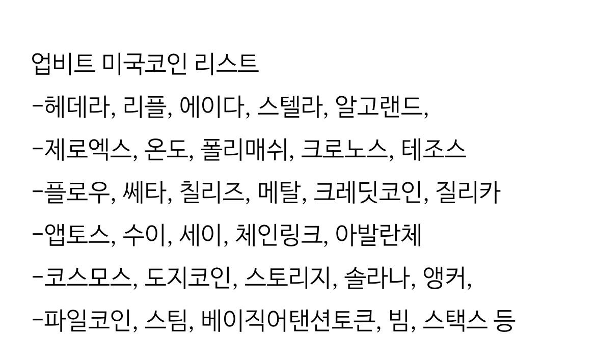 업비트 미국 코인 리스트