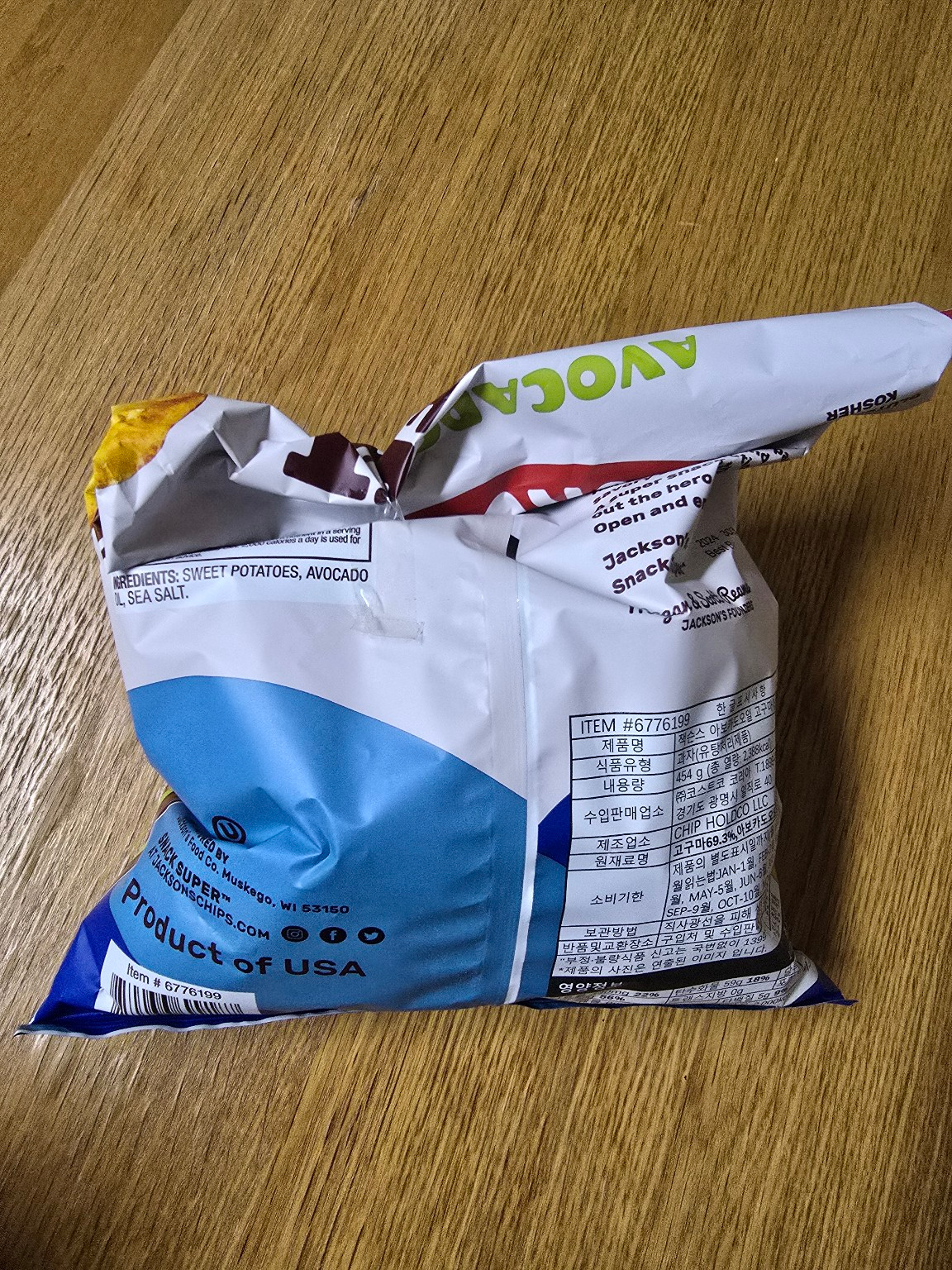 - 원재료: 고구마(Sweet Potatoes), 아보카도 오일(Avocado Oil), 천일염(Sea Salt)